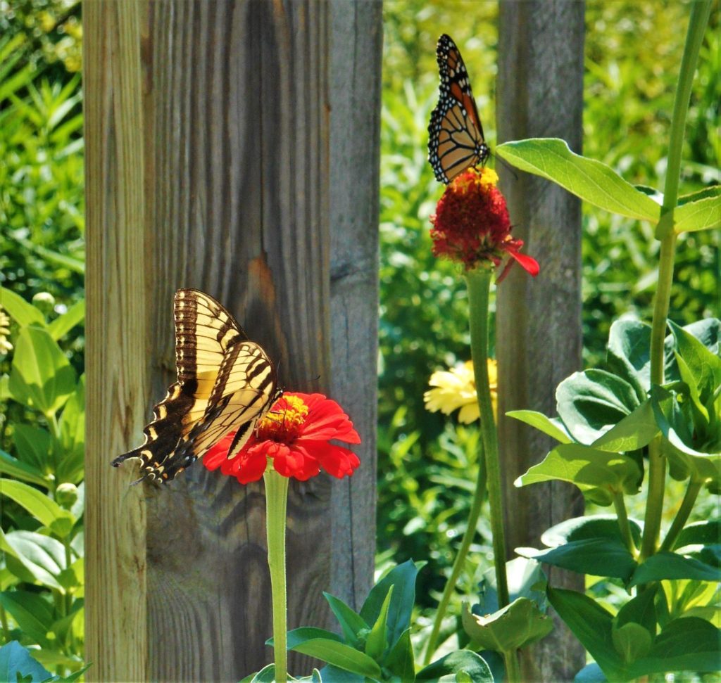 In addition to host plants, which will probably have their leaves eaten during the season, include some non-host flowering plants to keep the planting attractive and productive over a long season.