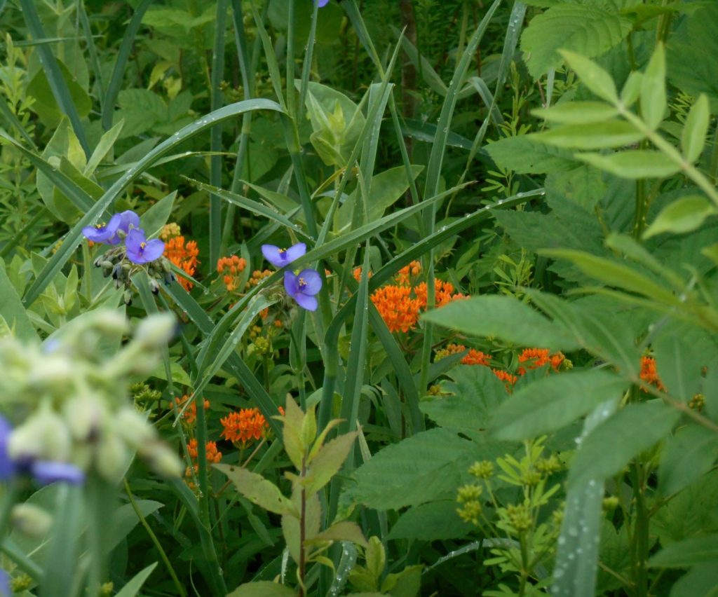 Asclepias tuberosa shines in a mixed planting at the Williamsburg Botanical Garden.