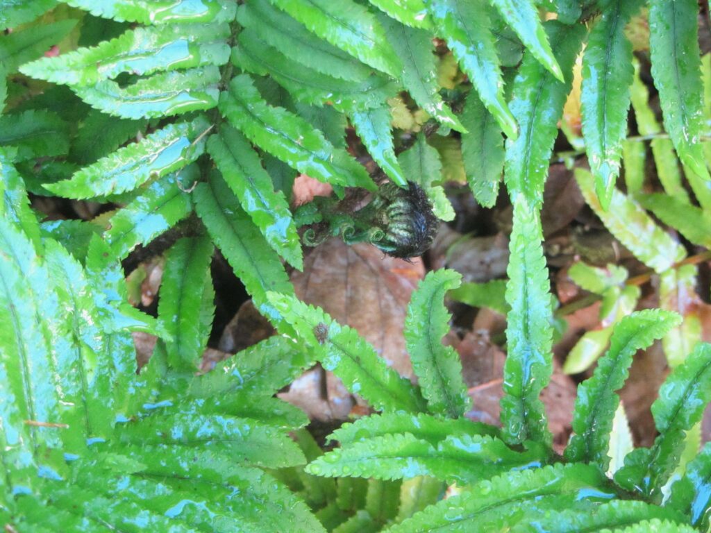Polystichums have hair like scales on their fiddleheads and rachises that birds gather to line their nests. Korean tassel fern