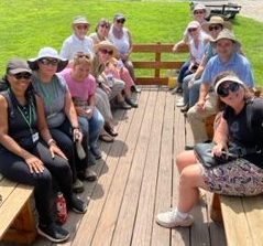 Memorable Moments – The tour included a ride on the farm’s trailer pulled by the tractor with Randy at the wheel. And from their vantage point on the trailer, the Master Gardeners had a bird’s eye view of KelRae Farm where it was easy to see the fields and buildings that make up this successful business.  And speaking of birds, while on their tour, the Master Gardeners were escorted by a hyper-vigilant flock of Guinea Fowl who, like watch dogs screeched at the arrival of these newcomers.