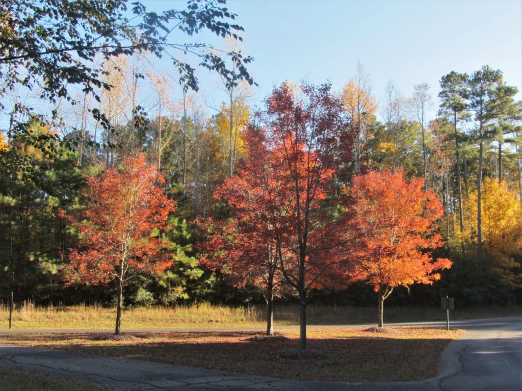 Trees turn bright colors each autumn at the Williamsburg Botanical Garden and Freedom Park Arboretum.