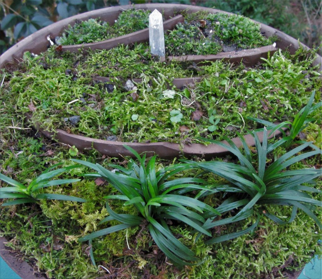 Moss (whatever grows locally on soil, used as living mulch in the pots.)
