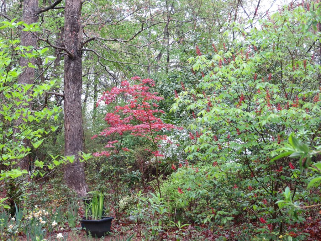 The garden is endlessly generous when allowed to follow its own course. I found five native dogwood tree seedlings growing in a container on the front porch last summer. At the end of the season, I knocked them out of the container and potted up each one separately in a gallon sized pot of its own. They have grown on all winter, developing good roots, and I replanted two of them into part of the fern garden in early April. Red maple seeds rain down in every gust of wind this week, promising seedlings in the coming months. And as I weed and prune in preparation for the new season’s growth I keep coming across seedlings of beech, oak, and hickory. Those are among the climax species of trees in our area. Squirrels and birds plant their seeds each fall while gathering and storing food away for the winter.