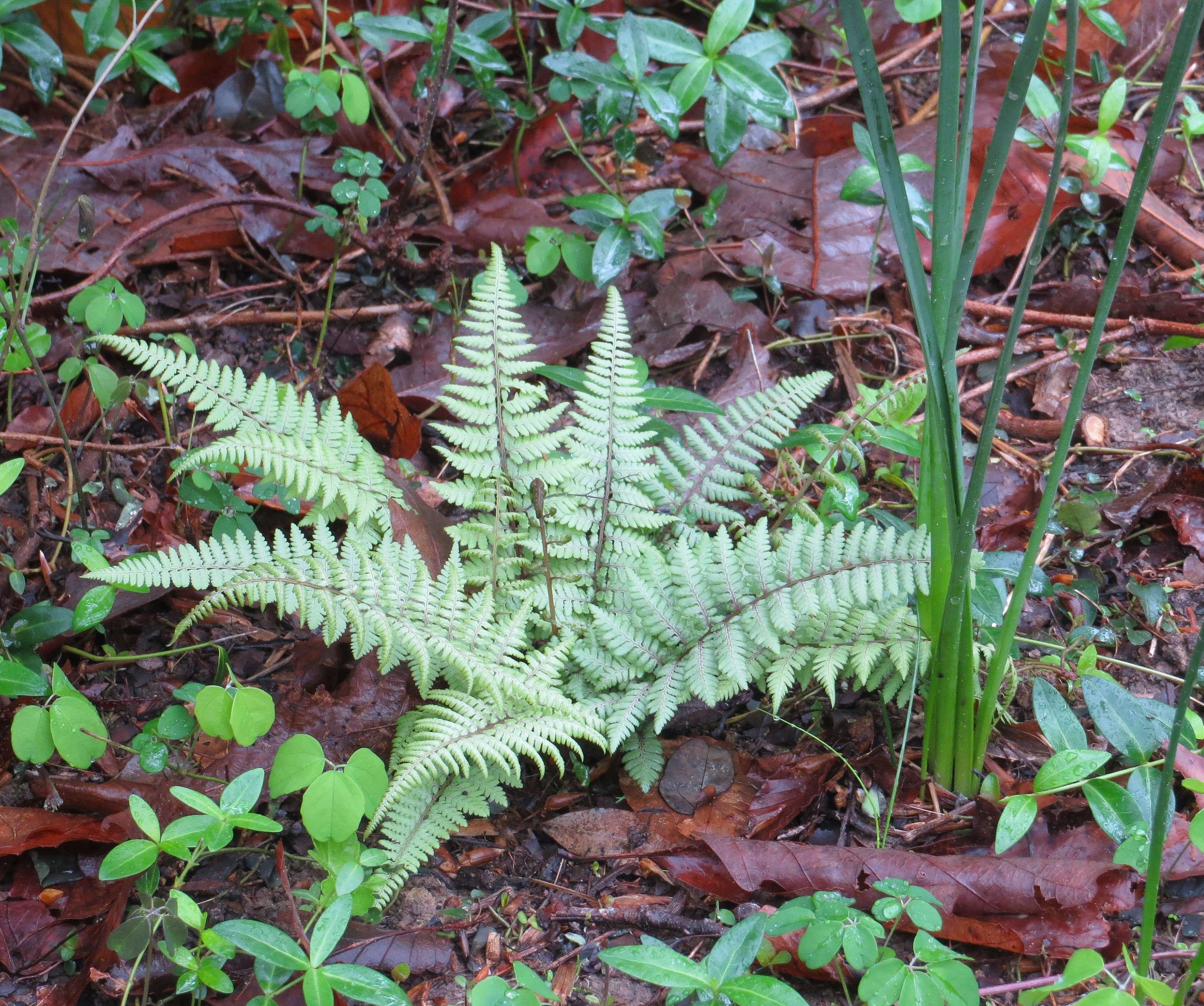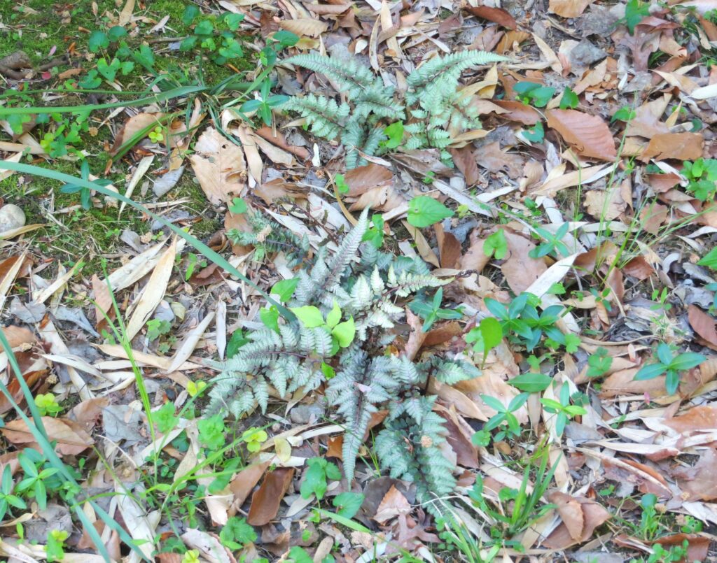 There is no difference in how well these Asian fern species grow in our garden when compared to native species like Christmas ferns, or marsh ferns, which also volunteer wherever their spores find a moist spot to grow. In fact, Japanese painted ferns, Athyrium niponicum, will hybridize with our native Athyrium filix-femina, resulting in the beautiful silvery hybrid A. ‘Ghost.’