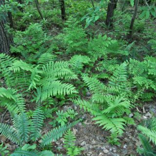 Why do gardeners use ferns in their designs?  Ferns form an important layer in the landscape, especially in shady gardens.   Peaceful and calming, they grow lushly, providing both structure and interesting texture.   Some may dismiss ferns as uniformly green, but many varieties provide vibrant color.   Ferns make excellent ground cover, specimen and filler plants.  While some grow as single fronds arising from a rhizome, or in small vase-shaped clusters, many ferns spread to form larger and larger clumps over time.