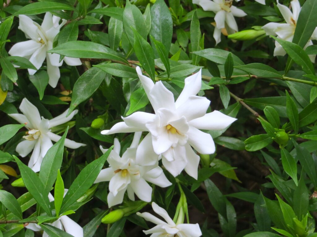 Gardenias aren’t native to North America, preferring the more tropical conditions of the Pacific islands, Australia, southern Asia, and parts of southern Africa. They are native along river banks in Southern China, Taiwan, Vietnam, and Japan. There are more than 120 species of Gardenia, a genus belonging to a division of the coffee, or Rubiaceae family. The flowering Gardenia found most often in American gardens is G. jasminoides. This species was known previously as G. augusta, G. florida, and as G. grandiflora.