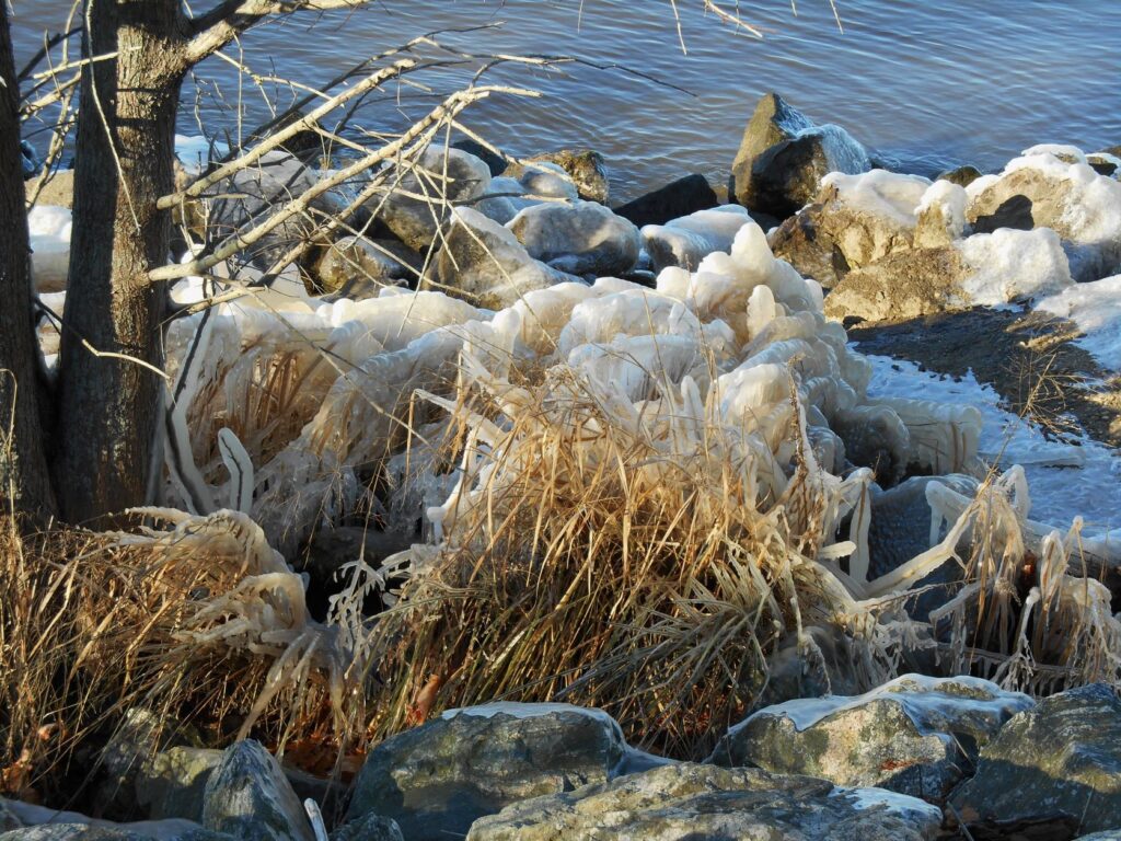 Ice insulates plants from wind damage during cold spells. Ice on woody plants helps protect evergreen leaves and flower buds.